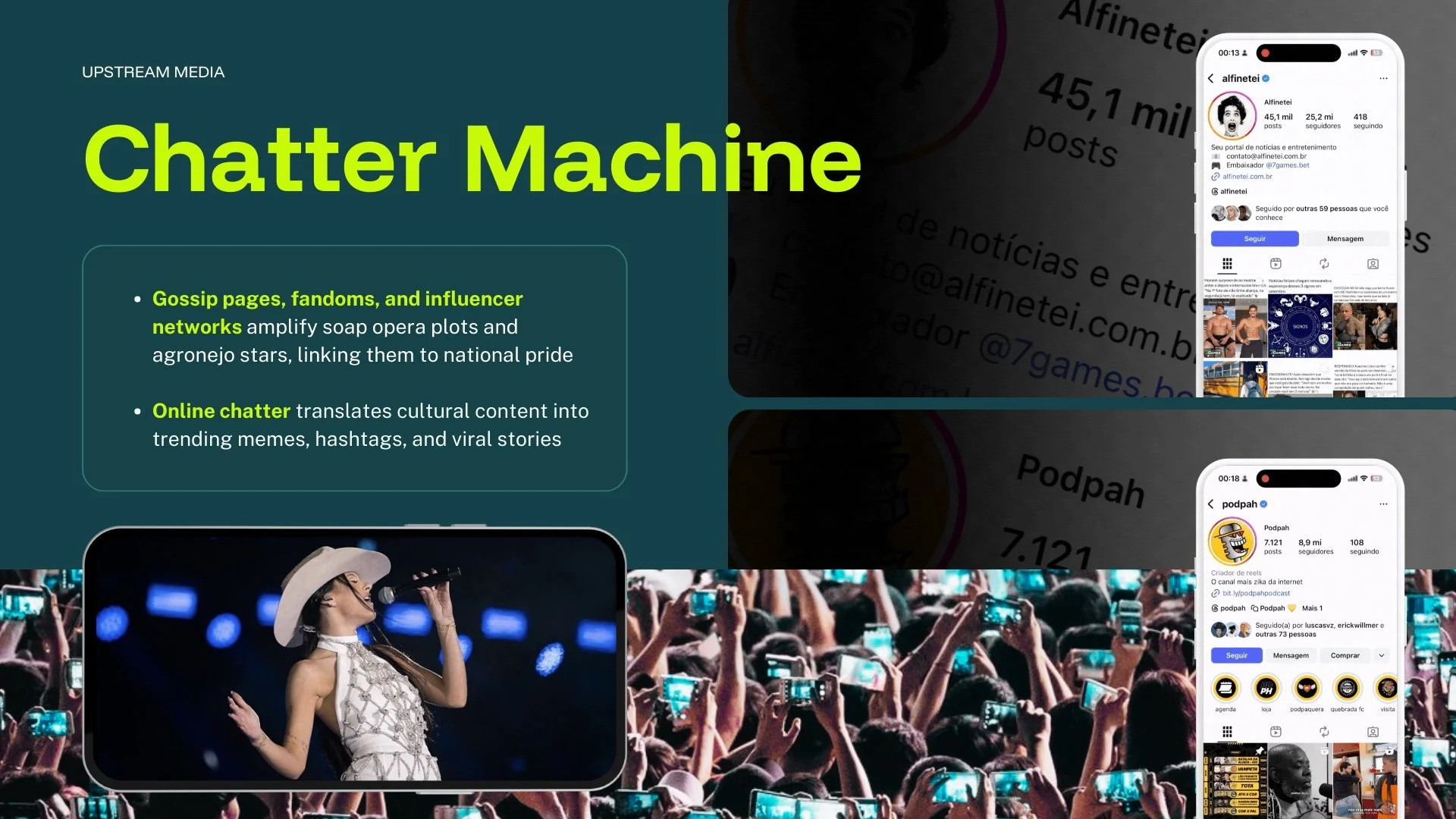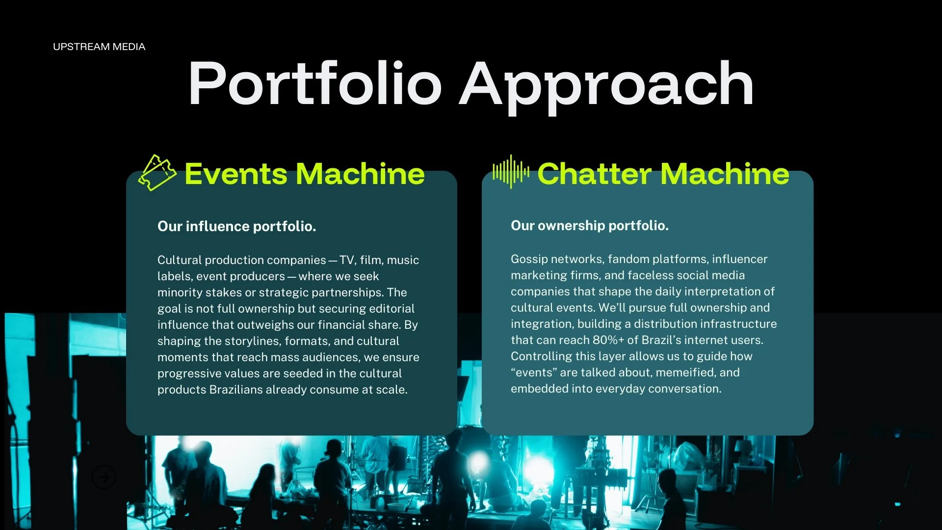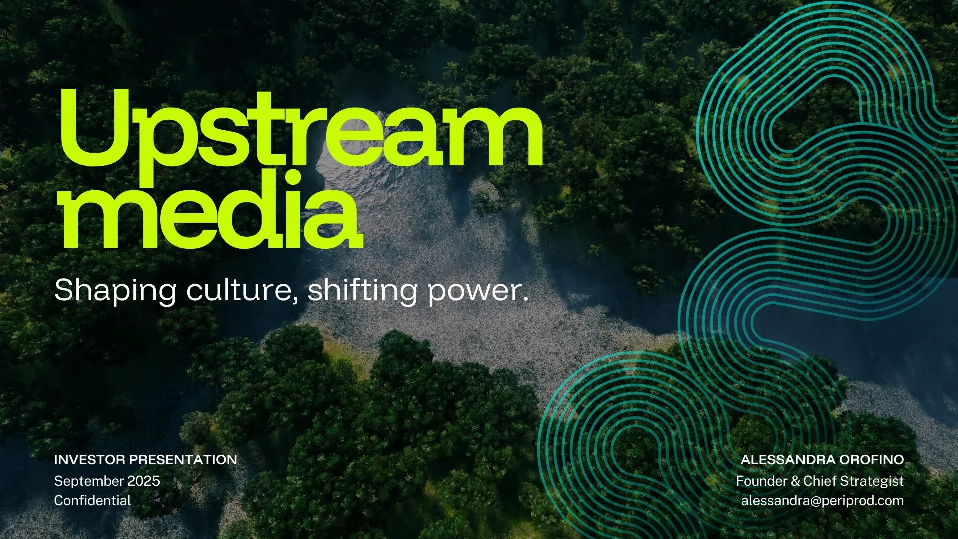 Client: Alessandra Orofino | upstream Media | Rio de janeiro, brazilUpstream Media is a high-impact initiative working to counter global authoritarian dominance and build democratic, climate, and cultural resilience through acquisitions and influence in mass media and popular culture.